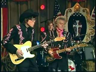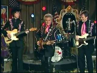 Marty said, "Oh yes." Eddie promoted Marty's book of photographs, Country Music: The Masters. After a commercial break, Marty said, "Oh yeah. Welcome back to The Marty Stuart Show, ladies and gentlemen. I'm proud to say that Mississippi is the sponsor of this show. And Mississippi is known as the birthplace of America's music. It's an impressive list of country, gospel, blues, rock & roll, jazz and classical music legends that come from Mississippi. At present, there are Blues and Country Music Trail Markers that run throughout the state. These trail markers commemorate the people who created the music as well as some geographical sites that contribute to America's musical legacy. Philadelphia, Mississippi is the home of two such markers with one soon to be added. You'll find bluesman Otis Rush's marker at the Train Depot and Visitor's Center and I'm honored that Country Music Trail Marker #2 has my name on it. You'll find it on the City Square. Philadelphia's third marker soon to be unveiled honoring the great country producer and songwriter, Mr. Bob Ferguson. It will be a sight to behold. So be sure and visit Philadelphia, Mississippi and check out the trail markers. And, Loretta, speakin' of sights to behold, here comes a nice one. You might need him down there in Hurricane Mills. He's the Sultan of Goodlettsville, the most popular man in country music, the ole Tennessee Slicker. How 'bout a hand for Leroy Troy. Come here, Leroy. Well, there's Loretta and Connie. That's right. He put the 'Good' in Goodlettsville. Hello pal."
