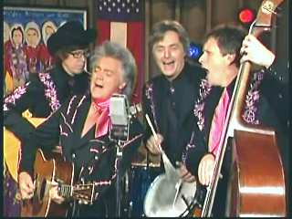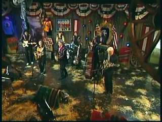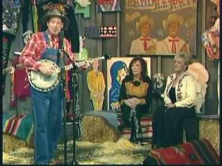 Marty said, "Hard to beat that. Hard to beat that, pal. Get it." Eddie said, "Leroy Troy right there and 'Five Pounds Of Possum'. Imagine such a thing. Only on The Marty Stuart Show will you hear something like that. Well, it's hymn time this week. We're going to ask The Superlatives to gang around and join Miss Loretta Lynn on one of her songs, 'Everybody Wants To Go To Heaven'."