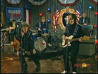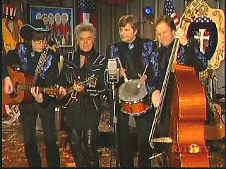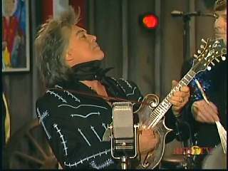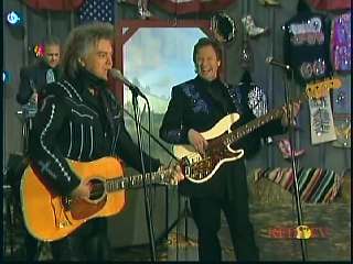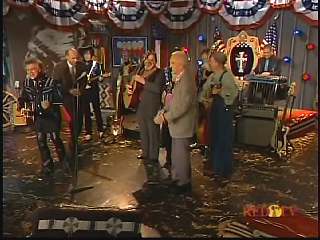 Marty and Kenny were dancing throughout the song. Eddie Stubbs danced over to the microphone and Marty said, "Get in there swanky. Whatcha gonna talk about, Eddie boy?" Eddie said, "I got the Truck Drivers' Blues and you're makin' me dance. And everybody loves Marty Stuart doing the 'Truck Drivers' Blues'." Eddie promoted Connie Smith's Born To Sing boxed set. After a commercial break, Marty and Connie were on stage. Marty said, "Constance, it's time." Connie said, "It is time." Marty continued, "For the Sultan of Goodlettsville, the most popular man in country music, Mr. Emery. How 'bout a hand for Leroy Troy, the ole Tennessee Slicker. Where is he? Come out, Leroy. Have a seat. Brought you a chair. You know Dallas and Ralph. Whatcha got in mind to play for us?" Leroy: "Grandfather's Clock." Marty: "One of the precious songs of all time." Leroy: "And I sure hate to do it." Marty: "What? Well get it over with." Leroy: "I am." Marty: "All right." Leroy: "Right now. Here we go." Marty: "All right." Leroy: "Take one." Marty: "All right. He's off to a good start." Leroy: "Yeah, I about forgot about this." Marty: "Uh ha. Yeah." Leroy: "Hickory, dickory dock. Two mice ran up the clock. The clock struck one. The other got away. Hickory, dickory dock."