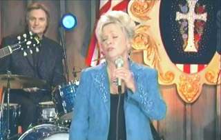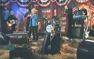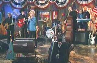 Marty said, "That's mighty beautiful. That's mighty pretty. Thank you Dale, thank you Oscar, thank you Teresa. Dale Jett and Hello Stranger." Eddie said, " ' When The Sun Comes Out Again'. Fine job there from Dale Jett and Hello Stranger." Eddie promoted Kenny Vaughan's V. After a commercial break, Marty said, "Welcome back everybody. Hey, how 'bout a hand for Dale Jett and Hello Stranger over here on the hay bales. And how 'bout a hand for my mama and daddy, John and Hilda Stuart, right over there on the front row today. Welcome mama. Welcome daddy. And how 'bout a hand for John and Hilda's daughter-in-law comin' through the red door. How 'bout a hand for Miss Connie Smith, ladies and gentlemen. Hey Constance. Sing us one of your pretty RCA songs." Connie said, "I'll do it." Marty said, "Whatcha gonna do?" Connie said, "Too Many Rivers." Marty said "All right."