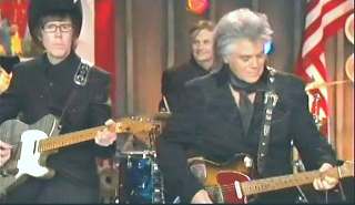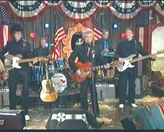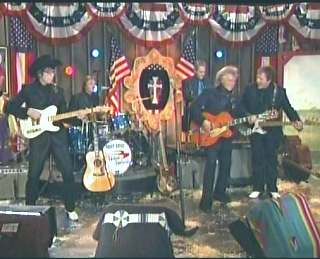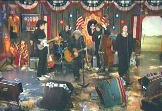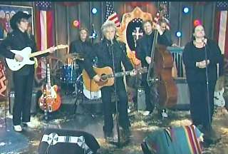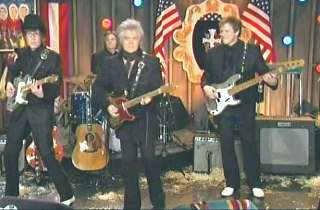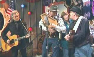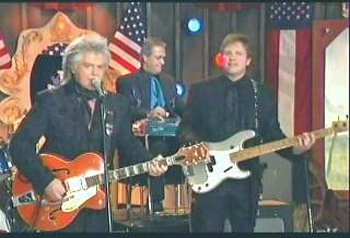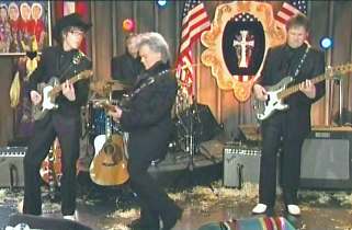 Marty said, " 'Going Nowhere Fast'. Yeah. Ladies and gentlemen, thank you for join' us on The Marty Stuart Show. Superlatives. There it was goin' nowhere fast. Aww, I'm lookin' forward to this show. This is gonna be one of my favorite shows, I can tell ya right now. My favorite country singer in the world is here. Mr. Dale Jett and his band Hello Stranger. The Carter Family is who I love so much. The music of The Carter Family. Dale Jett is a third generation Carter. Uncle A.P. and Aunt Sara's grand young'un. And Mother Maybell's grand young'un, Miss Lorrie Bennett, is here and they're just some of the Carters that's keepin' that music alive. Here with a brand new Tom T. Hall song, would you do me a favor and welcome Mr. Dale Jett and Hello Stranger." Dale Jett and Hello Stranger performed "When The Sun Comes Out Again."