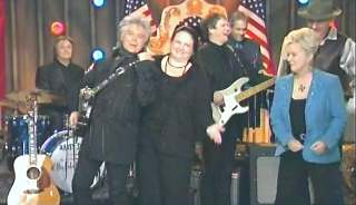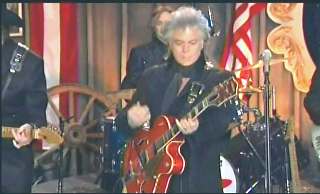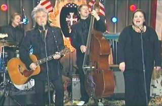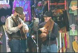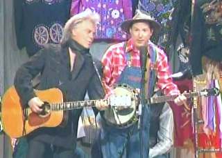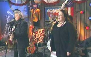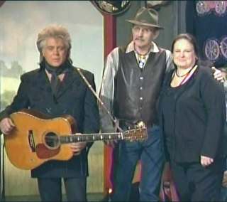 Marty said, "Changes. Give me a hug. Miss Lorrie Bennett, everybody." Eddie promoted Connie's CD boxed set Just For What I Am." After a commercial break, Marty said, "Welcome back. Glad to have you. Ladies and gentlemen, this show is sponsored each and every week by the great state of Mississippi. And Mississippi's regarded as the birthplace of America's music. You'll find nearly 200 historical stops along the Blues and Country Music Trails that run through the state and celebrate some of American music's most notable names. Dale Jett and Lorrie Bennett are names that are often spoken alongside that of their family, The Carter Family. The Singin' Brakeman, Jimmie Rodgers, is from Meridian, Mississippi and those names are often mixed together. And we all agree that the 1927 Bristol Sessions in which Mr. Peer discovered The Carter Family and Mr. Jimmie Rodgers marked the downbeat of the world of country music as we know it today. At those sessions, they represented the people of Appalachia and Virginia. I'm speakin' of The Carter Family. Mr. Jimmie Rodgers is known as the Father of Country Music. He represented the people of my home state in Mississippi. The outcome of all that is the world is a much better place thanks to the music of Jimmie Rodgers and The Carter Family. So on behalf of all the people of Mississippi, thank you very much and with love to The Carter Family. How 'bout a hand for my friends The Carter Family. Y'all are Carters. Yes sir. And how 'bout a hand for the gentleman representin' the state that links it all together. The ole Tennessee Slicker. A constituent that happens to be the Sultan of Goodlettsville. How 'bout a hand for Leroy Troy, everybody. Here he comes, Dale. There he is, Lorrie. Well .... hello, pal. Don't know a think about it, but somethin' tells me you might have a Carter Family song on your mind."