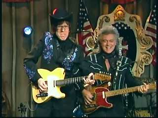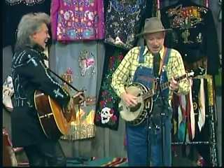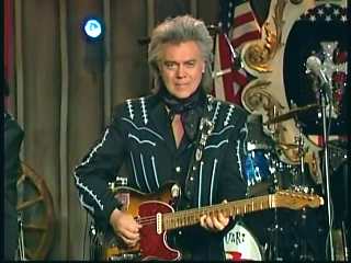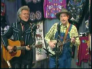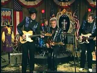 Marty said, "All right, Contance. Hey, Mr. Kershaw. Please come around. Mr. Doug Kershaw, ladies and gentlemen." Marty and Doug performed "Blue Town."