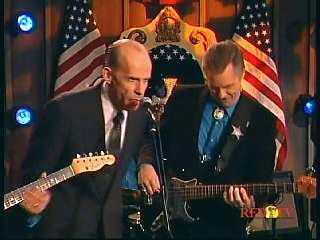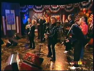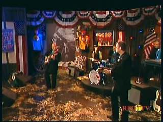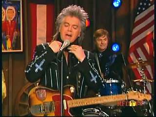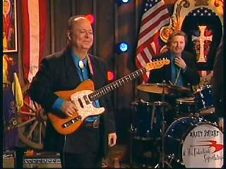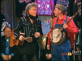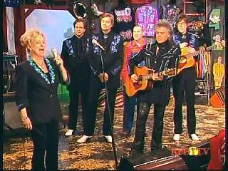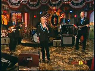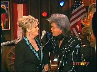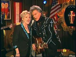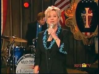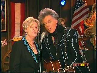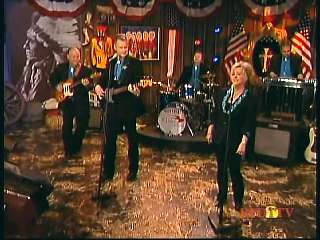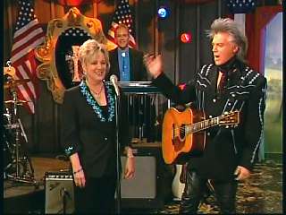 Eddie Stubbs said, "The Rolls Royce of country singers just pulled up and got out with that one right there. That's Connie Smith and that great band The Sundowners." Eddie promoted the two DVD set of highlights from the first season of The Marty Stuart Show. After a commercial break, Marty and Connie were onstage and Marty said, "Ahh welcome back to The Marty Stuart Show and how 'bout a hand for Connie Smith and all The Sundowners. And, what about that hay bale selection over there. Ah yes. Superlative hay bales. And Superlatives, we have to make mention, we're honored to have the U.S. "Hair Force" with us today. Our advisory committee. How 'bout a hand for the "Hair Force. Hey Connie. I meant what I said when I introduced The Sundowners. You and The Sundowners are absolutely the greatest country act out there right now. I love this band." Connie said, "Thanks." Marty continued, "Well, since they're here, why don't you introduce the ladies and gentlemen." Connie said, "Me .....no. This is my guitar player Rick Wright over there." Marty said, "That's right. That's Rick." Connie continued, "Playin' drums is Ric MClure." Marty said, "That's him." Connie said, "And I think you've heard of this guy. Gary Carter, my steel guitar player." Marty said, "Everybody knows Gary Carter. And for twenty years, my band leader and my bass player, backup singer, whatever, bus driver, whatever you need. Mr. Rod Hamm." Marty said, "Yes sir. I got a comment about that." Connie said, "Okay." Marty continued, "Last time The Sundowners came by, Rod got the short end of the stick. He didn't get to sing a song so since he's here, we really need to work him hard today." Connie said, "I think he should start workin' after twenty years." Marty said, "Well, I tell ya what. I've got a request sang. My favorite song you do is a Skeets McDonald that we all learned off the Eddie Stubbs show. How 'bout a hand for Rod Hamm and 'Same Old Town'. You gonna sing backup?" Connie said, "Can I? .Can I be your girl singer?" Rod said, "This is one of your favorites and I hope it's one of mine."