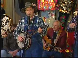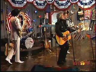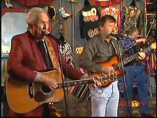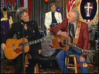 Mel was clapping because he got through the talking part of the song without studdering. He said, "I did it, I did it." Marty said, "Detroit City. Thank you, Melvin." Mel said, "I can't believe I did it. That's the first time." Eddie said, "Ah goodness. That is fine right there. Detroit City. Mel Tillis and Marty Stuart. Both of 'em playing those great looking Martin D-45 guitars, too." Eddie promoted Connie Smith's Born To Sing boxed set. After a commercial break, Marty said, "Welcome back to The Marty Stuart Show. Hey thank you once again for writing me at the Grand Ole Opry, sending us emails. If you're ever in Nashville and you've never been to the Grand Ole Opry, you owe it to yourself to come see it. You'll see Eddie Stubbs in person there just about every time. It's historic. Speaking of historic, Melvin. It's time. It's time for the Sultan of Goodlettsville, the most popular man in country music. Ladies and gentlemen, here he is the ole Tennessee Slicker, Leroy Troy. Where are you Leroy. Hey Leroy. You know all the Statesiders, Melvin, Good ole Jimmy will play with us. Ole Hank Singer. Pick along with us, Jim." Leroy Troy sang "The Drunkard's Grave."