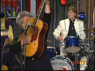 Eddie Stubbs started the show by introducing the guests. "From Nashville, Tennessee, the country music capital of the world and home of the air castle of the south, it's time for The Marty Stuart Show, featuring Marty Stuart, the Rolls Royce of country singers Miss Connie Smith, the ole Tennessee Slicker Leroy Troy, along with all the Fabulous Superlatives: Cousin Kenny Vaughan, Handsome Harry Stinson, the Apostle Paul Martin, plus Gary Carter on the steel guitar, and today's very special guest, Country Music Hall of Famer Mel Tillis along with Brian Sterling, Jimmy Buchanan, and Hank Singer. Join us now for 30 minutes of fun and great country music. I'm your announcer Eddie Stubbs. Now how about a Superlative welcome for our host, the head hound dog himself, here is Marty Stuart." Marty said, "You a hound dog. You a hound dog, Eddie." Marty and The Fabulous Superlatives performed "Don't Leave Her Lonely Too Long."
