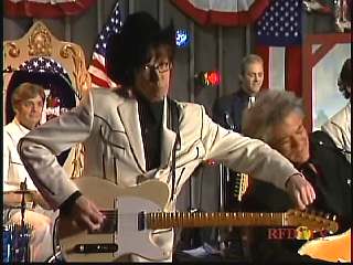 Marty said, "Thank you for tuning in The Marty Stuart Show. I am Marty Stuart. This is the best way to spend your night. Playing country music, singing country music, listening to country music. We got it all for you. Speaking of country music, Superlatives, we've got the head Statesider, a member of the Country Music Hall of Fame, my friend, Mr. Mel Tillis. Where are you Melvin. Come here. Welcome, Mel. Glad you're here buddy." Mel sang "Sawmill."