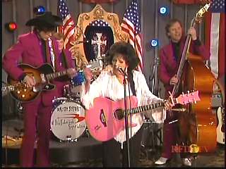 Marty said, "Welcome to The Marty Stuart Show. I am Marty Stuart and we are so glad you joined us. Ladies and gentlemen, it is a country rockin' show or a rockin' country show, either way you wanna look at it tonight. And to get us started, I'm talkin' about one of the queens of American music. One of the true greats. Ladies and gentlemen, how 'bout a hand for the great Wanda Jackson. Hello, Miss Wanda." Wanda sang "I Gotta Know."