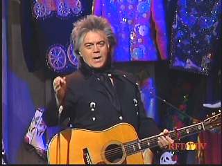 Marty said, "Well, that's the end of the selection. Come off the track right there." Eddie said, "Great job there, Leroy Troy with 'The Streamline Cannonball'. Good to hear you doin' a train song today. Well, it's time to settle down and get serious with you right now and it's hymn time this week and with a very special song and a message to go along with it, here's Marty Stuart." Marty said, "Thank you, Eddie Stubbs. Here's a song I wrote about a friend of mine." Marty performed "Porter Wagoner's Grave."
