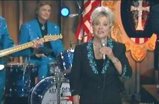 Marty said, "Look At That Girl. Look At That Girl. .I'm Marty Stuart. Thank you for joinin' us. Superlatives? We had 'Look At That Girl' comin' right down the line. Yes we did. So why you're lookin' at that girl, look at that girl comin' through that red door. Her name is Connie Smith. How 'bout a hand for Connie. Change with ya, Cous. Hi baby. Look at that girl. Look at that girl." Connie sang "World Of Forgotten People."