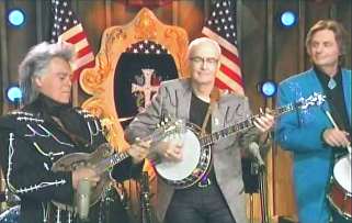 Kenny said, "Oh yeah, it won't do." Marty said, "Good job, Cous. Gather round, Superlatives. How 'bout a hand for the Louisville, Mississippi flash, ladies and gentlemen. My friend, Mr. Carl Jackson and his hot banjo. Come here CJ. Hello friend. All right. Let's send this one down to Lethal Jackson whataya say. All right." They performed "Daybreak In Dixie."