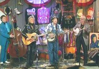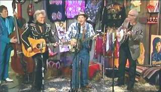 Marty: "You heard about Carl Jackson gettin' on that trail, didn't ya." Leroy: "Yes I did." Marty: "Isn't that good news?" Leroy: "Congratulations Carl." Carl: "Thank you. Thank you there, buddy." Leroy: "I tell ya what. When I was about twelve years old, Carl's record, banjo record, was one of my first besides Lester Flat and Earl Scruggs and the McCormick Brothers." Carl: "Is that right." Leroy: "Sure 'nuff man. Good company, good picker." Marty: "Well, put him to work." Leroy: "Well, I am, but you're just gonna play for support. Here's ya a love song. I call it my love song coz I love to sing it. It's called 'I Wish I Was Single Again'."