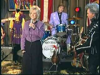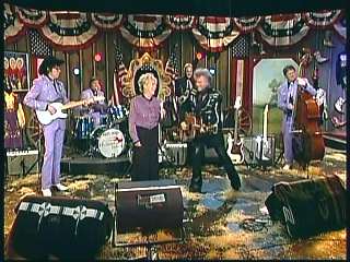 Marty said, "Kenny Lovelace, James Burton and Fluke Holland. There they go. Top cats, top cats. 'Good Lookin' Woman Like You'. Speakin' of good lookin' women, here comes a beautiful woman. My baby. One of the greats of all time. How 'bout a hand for Miss Connie Smith, everybody." Connie walks on stage. Marty says, "There ya are. You're amongst cats today, Constance." Connie said, "All right." Connie performed "Blue Heartaches."