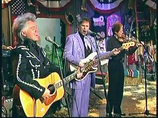 Marty said, "Story of Nadine, ladies and gentlemen. Make welcome Mr. Kenny Lovelace and his honky tonk fiddle. Wrote this one for you, Kenny. Cous." Marty and the guys performed "It's Only A Matter Of Time."