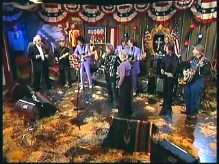 Marty said, "Masters of twang. Cous. On behalf of James Burton, Kenny Lovelace, W. S. 'Fluke' Holland, The Superlatives, Connie Smith, Leroy Troy, Gary Carter, Eddie Stubbs, I'm Marty Stuart sayin' thank you for seein; us. We'll see ya again next week right here on The Marty Stuart Show." He turns to Connie and says, "Wasn't that good?"