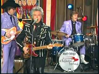 Eddie Stubbs started the show by introducing the guests. "From Nashville, Tennessee, the country music capital of the world and home of the air castle of the south, it's time for The Marty Stuart Show featuring Marty Stuart, the Rolls Royce of country singers Miss Connie Smith, the ole Tennessee Slicker Leroy Troy, along with all the Fabulous Superlatives: Cousin Kenny Vaughan, Handsome Harry Stinson, the Apostle Paul Martin, plus Gary Carter on steel guitar, and today's special guest, a member of the Country Music Hall of Fame, Charley Pride along with fiddlin' Hank Singer. Join us now for 30 minutes of fun and great country music. I'm Eddie Stubbs. Now how about a Superlative welcome for our host, the famed Philadelphian. Here is Marty Stuart." Marty said, "It's all right, Eddie. Handsome......" Marty and The Fabulous Superlatives performed "Just As Long As You Call Me."