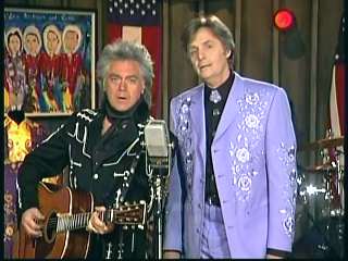 Marty said, "That's the way it goes, sometimes. You never know, do ya." Eddie Stubbs said, "Fine job right there, Leroy Troy and 'Hang Out Your Front Door Key. I believe that song is so old, it goes back before burglar alarms were even around. Well, it's hymn time this week. You know, all of us on the show love the music and the writing of The Louvin Brothers and Marty Stuart's gonna take Charlie's part on this song and Handsome Harry Stinson's gonna handle Ira's tenor line as they perform 'Let UsTravel, Travel On'."