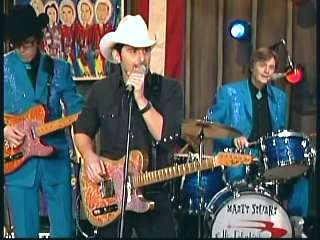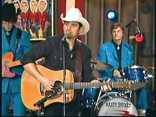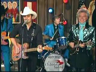Marty said, "Mr. Brad Paisley, ladies and gentlemen. Great job. Good song, Brad man. Cous. On behalf of Brad Paisley, Kendal, Justin, Connie. Lorrie, Leroy, The Superlatives, Eddie, and Gary, I'm Marty Stuart sayin' thank you for joinin' us. We'll see ya again .... hi baby ... next week right here on The Marty Stuart Show."
