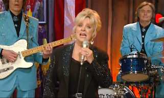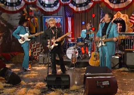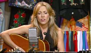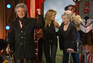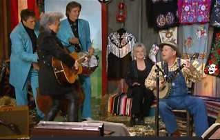 Eddie said, "The outstanding old time vocals and banjo acrobatics of the lovely and talented Leroy Troy. 'My Dixie Home'. You know we never do a show without featuring a song of faith and inspiration. We're going tocall on our special guest now, Miss Sheryl Crow, to sing one The Carter Family recorded way back in the 1930's, 'No Depression In Heaven'."