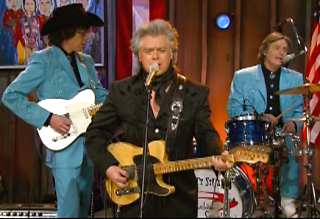 Marty said, "Miss Sheryl Crow. Cous. On behalf of Miss Sheryl Crow, Miss Connie Smith, Leroy Troy, Audley Freed, Gary Carter, Paul Martin, Harry Stinson, Cousin Kenny, Eddie Stubbs, I'm Marty Stuart." There was some bumping between Marty and Sheryl Crow and Connie Smith, and Marty was barely able to contain his laughing to get out what he did before the credits started rolling.