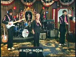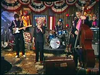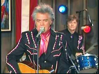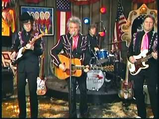 Eddie said, "Wonderful sounds right there. 'Holding On To Nothing'. Thank you, fellas." Eddie promoted Marty's book of photographs, Country Music: The Masters. After a commercial break, Marty said, "There you are. Thought you'd never come back. I consider it an honor each and every week to tell ya that The Marty Stuart Show is sponsored by my home state. I'm speakin' of dear old Mississippi, the birthplace of America's music. Now I wanna tell ya about an old friend that was located on the edge of Meridian, Mississippi. It was the Red Hot Truck Stop. Now I started travelin' when I was 12 years old and bein' the old road dog that I am, I know where the best truck stop coffee in the world can be found. For many years, the undisputable honor went to the Red Hot. The Red Hot was legendary. The place was always full of characters. Country music was king. Hank Williams' songs were simply a part of the atmosphere. George Jones songs were a way of life. The lines in Merle Haggard's face were understood and respected. A good ole boy's handshake there was better than a contract. And the waitresses, they knew they were servin' a legendary cheeseburger. But it was the Red Hot's coffee that ruled. It had a power. Aww, it could make time fly and stand still at the same time. But, as time often does, it will take from you what you most cherish. The latter days of the 20th century claimed the Red Hot Truck Stop. Today, the only thing left of it is the memories and the coolest sign in the southern states which sits in an empty parking lot on the outer banks of Meridian. You can see it as you pass by on I-20. Give it a wave. So here's to an old friend, fondly remembered. The Red Hot Truck Stop in Meridian, Mississippi. Speakin' of red hot, along with his famous Uncle Buck from Missouri, how 'bout a hand for the ole Sultan of Goodlettsville, the Tennessee Slicker, Leroy Troy and his famous Uncle Buck."