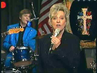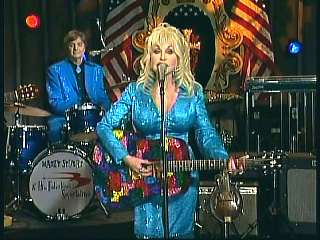 Dolly said, "Yow." Marty said, "Yeah. That's how that works out." Dolly said, "Thank you. God bless ya, Marty." Marty said, "God bless you sister Rebecca." After a commercial break, Eddie Stubbs promoted the Superlatone Store. Eddie said, "And now with one of country music's all-time great keepsakes, here's Marty." Marty said, "Thank you for comin' to see us." Dolly said, "Well, thank you. This is fun." Marty said, "Well ...." Dolly interrupted, "I've known you since your hair was flat and my chest was." Everyone laughed. Marty continued, "Hey, I've got a question for you." Dolly said, "Oh yeah?" Marty said, "One of my favorite songs, you and I always talk about 'Jolene'." Dolly said, "Yeah." Marty said, "Is there really a Jolene?" Dolly said, "Well, yeah. And, believe it or not, she's still followin' me around. I think she's in the audience today. She was a redheaded gal, but I think she's turned her hair blonde." Marty said, "That's her." Dolly said, "Is that her? I'm not sure." Marty said, "She's still doggin' you after all these years." Dolly said, "She is. I tell you, I don't know. That one looks like one of those drag queens that does Dolly on the road." Marty said, "You've a few of those." Dolly said, "I do. Well anyway, but 'Jolene' is loosely based on a true story." Marty said, "Well, why don't you just sing it then." Dolly said, "I think I will." Ladies and gentlemen, Miss Dolly Parton." Dolly said, "All right, thank you, Marty." Marty said, "Go Dolly." Dolly said, "Sorry Melba Toast. Just kiddin' you."