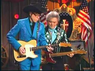 Marty said, "Hey." Eddie said, " 'Ashes Of Love,' one of the great Johnny & Jack classics there. Fellas, you sounded just like they did on record back in 1952. That's fine." Eddie promoted Marty's book of photographs, Country Music: The Masters. After a commercial break, Marty said, "Welcome back to The Marty Stuart Show. How about it little man. Everything good? All right then. Every St. Patrick's Day in the capital city of Jackson, Mississippi, now a time-honored tradition is the St. Patrick's Day parade. Some of the darlings of that big event are the mighty Sweet Potato Queens and today, Superlatives, Grand Ole Opry Square Dancers, here's how it is. The Sweet Potato Queens send their love to the Queen of Country Music, Miss Kitty Wells. How 'bout that. Go give Miss Kitty a hug, would ya? Go give her a hug. All right." The youngster goes over and hugs Connie. Marty laughs, "Well, close enough, close enough." Connie directs the little man to Kitty and he gives her a hug. Marty continues, "There he goes. Speaking of mighty potaters or in this case, tater, how 'bout a hand, ladies and gentlemen, for the Sultan of Goodlettsville, the most popular man in country music, here comes Miss Kitty. The ole Tennessee Slicker. How 'bout a hand for Leroy Troy. Come here, Leroy. Well I wish you'd look. I wish you'd look."