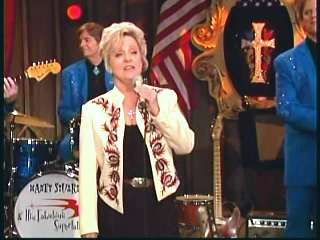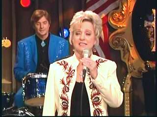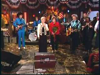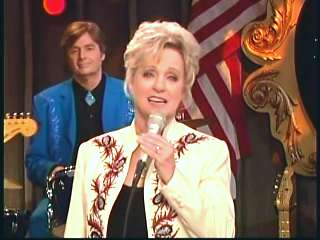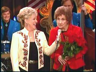 Marty said, "Fine job Mr. Stubbs. Grand Ole Opry Squaredancers. Whooo" Eddie promoted the two DVD set of highlights from the first season of The Marty Stuart Show. After a commercial break, Marty said, "Welcome back, ladies and gentlemen, to The Marty Stuart Show. Superlatives. Wish you'd look. The Queen of Country Music, Miss Kitty Wells, is right there. All the Grand Ole Opry Square Dancers. And on the front row, Miss Sue Sturdivant and Stephanie, Miss Kitty Wells' daughter and granddaughter. Connie's son Kerry came all the way Taiwan and my sister Jennifer came all the way from Smyrna. How 'bout a hand for family. Speakin' of family, Mr. Kitty Wells and Mr. Johnny Wright just celebrated 72 years of marriage not long ago. Yeah, congratulations. That's about 140 in show biz years. Here comes a lady that I guarantee ya loves Miss Kitty Wells. How 'bout a hand for another great one. Miss Connie Smith, everybody. Come here, Constance. Here she comes. Making believe." Connie performed "Making Believe."