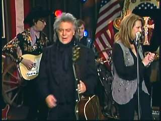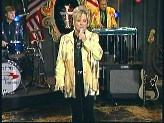 Marty said, "That's how it goes right there. That's how it goes right there. You did good, Patty. You did good." Eddie said, "One of the best loved hillbilly songs of all time right there. 'Why Baby Why' sung by Miss Patty Loveless." Eddie promoted the two DVD set of highlights from the first season of The Marty Stuart Show. After a commercial break, Marty said, "Welcome back everybody. How 'bout a hand for Miss Patty Loveless over here Superlatives. And all the young'uns. A true country music assistant. And how 'bout a hand for one of the greatest of all time. Comin' through this red door right now is the wonderful Miss Connie Smth. Come here Constance. Well. Do it baby." Connie performed "Paper Roses."