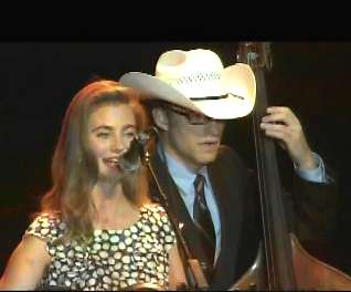 Eddie Stubbs and The Quebe Sisters joined Connie on "Satisfied."