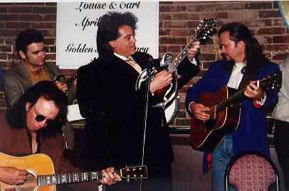 | Ronnie McCoury on mandolin, Jody Maphis on guitar with Marty and Travis Tritt |