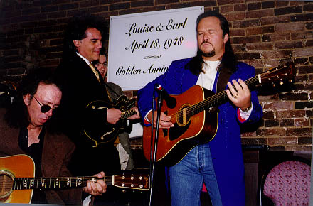 | The crowd helping the couple celebrate their 50th wedding anniversary on May 3 at the Gibson Cafe in Nashville included Marty Stuart, Connie Smith, Travis Tritt, John Hartford, Patty Loveless and husband Emory Gordy, Jr., Waylon Jennings and wife Jessi Colter, Kitty Wells and Johnny Wright, Tom T. Hall, Ramona Jones and her daughters Alisa and Eloise. |